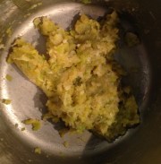 Sobre el agua y la mantequilla echamos la harina hasta que quede una pasta sin grumos, quedando una Panade homogénea de harina.