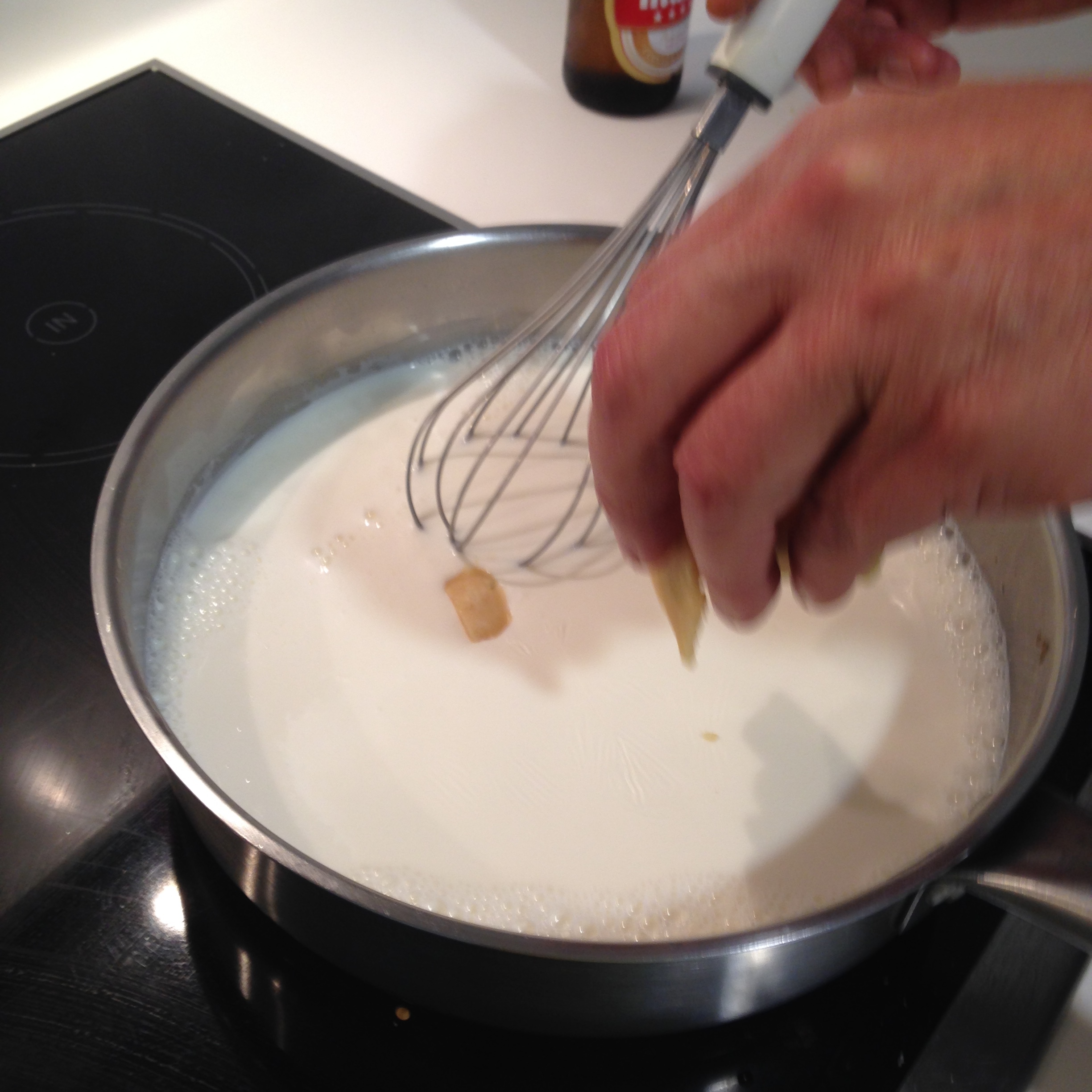 Para que no se produzcan grumos tiene que haber choque térmico, es decir, roux frío y leche caliente o leche fría y roux caliente.