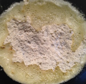 Primero, actuaríamos como lo hemos hecho antes: mezclar mantequilla y harina hasta que ésta se tueste y, una vez que esté, sacamos esta mezcla a un recipiente plano, a un papel sulfurizado o un recipiente cualquiera y lo metemos a enfriar en la nevera hasta que endurezca. La ventaja de esto es que podemos preparar cantidades industriales de esta mezcla y la tendríamos almacenada para cuando la necesitásemos en la nevera para unos días o en el congelador, si la queremos para más tiempo. A esta mezcla se le llama Roux.