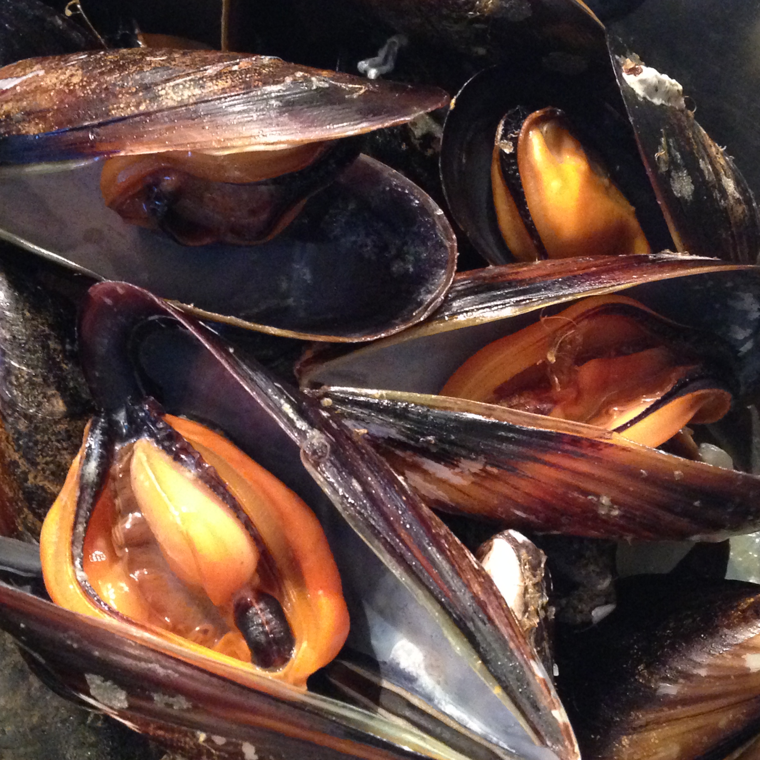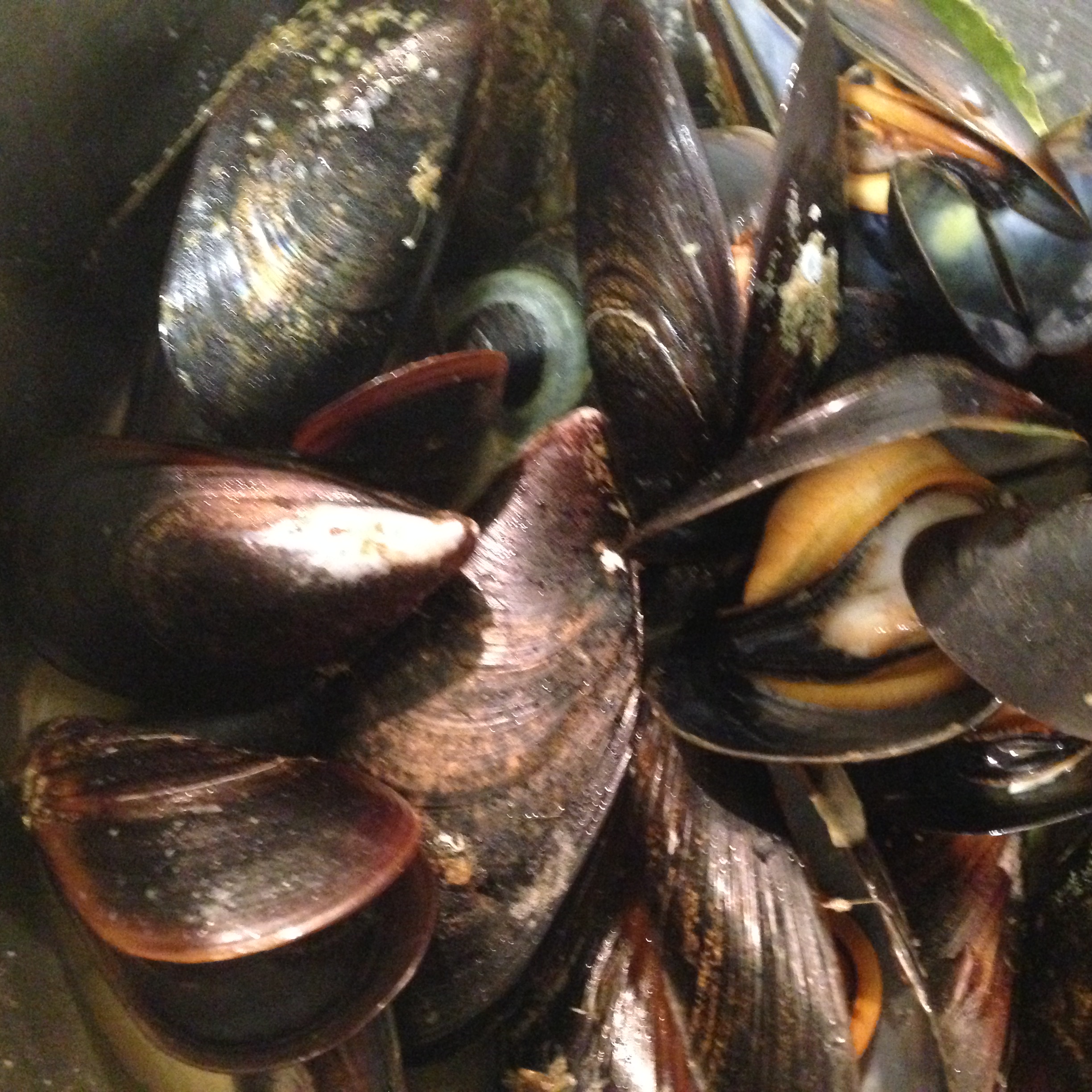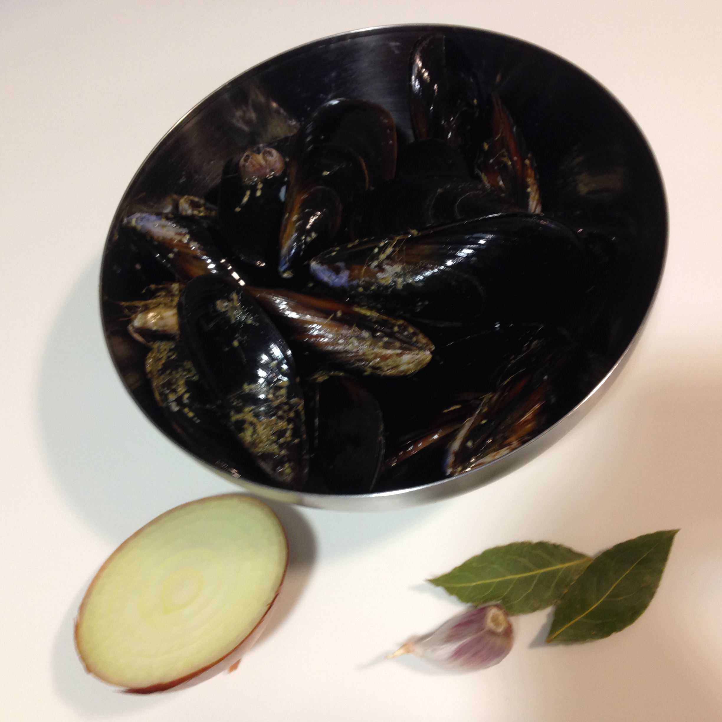 Mientras esto suda, lavamos y limpiamos bien los mejillones y los reservamos.