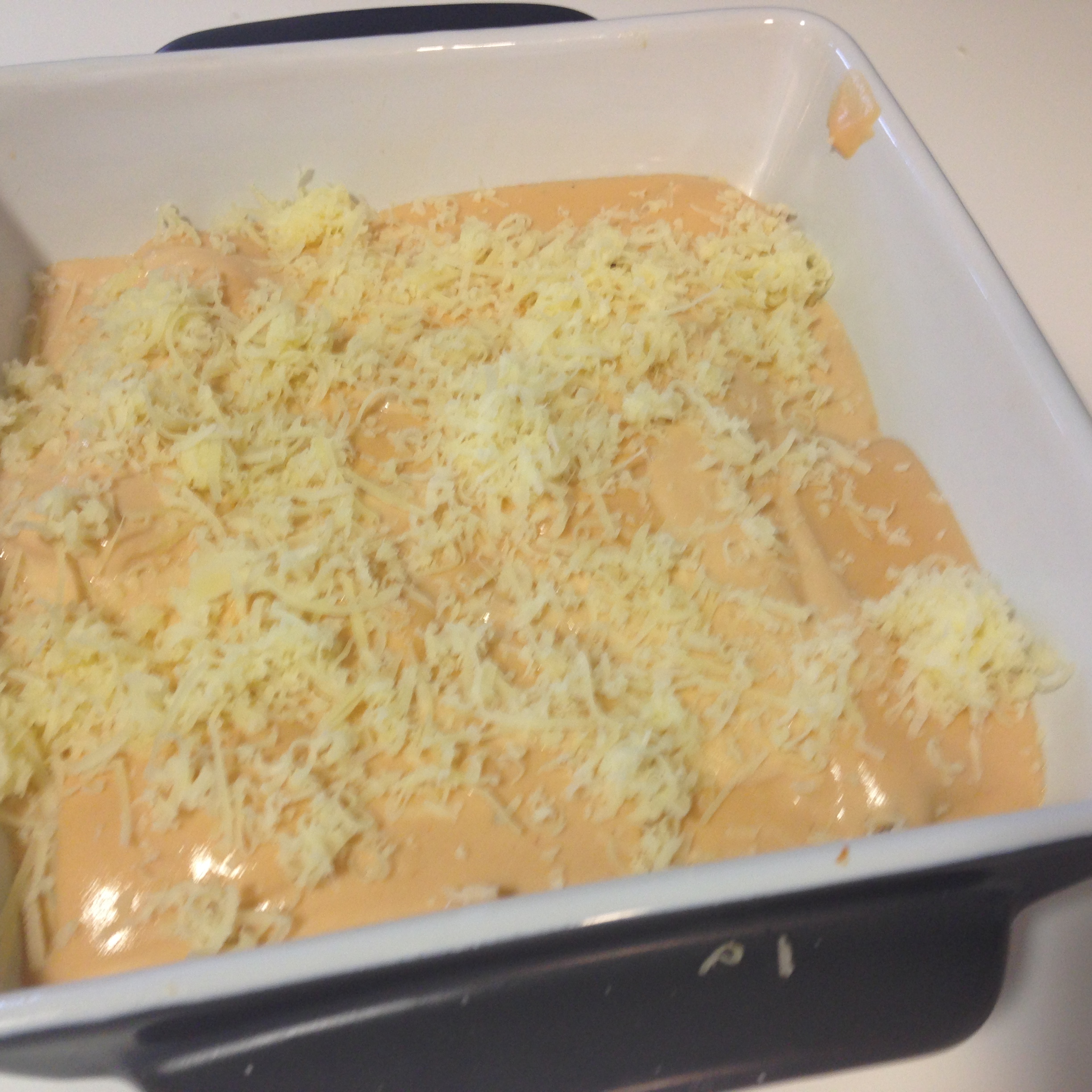 Finalmente, rallamos el queso y ya tenemos todo preparado. Vertemos sobre los canelones colocados la bechamel, espolvoreamos sobre ésta el queso rallado y los tenemos listos para poner en el horno, que tenemos caliente a 160º, hasta que se funda el queso y, en ese momento, encendemos el grill y sacamos cuando estén dorados. Si solo pusiéramos el grill, cabe la posibilidad de que no se caliente el interior bien.
