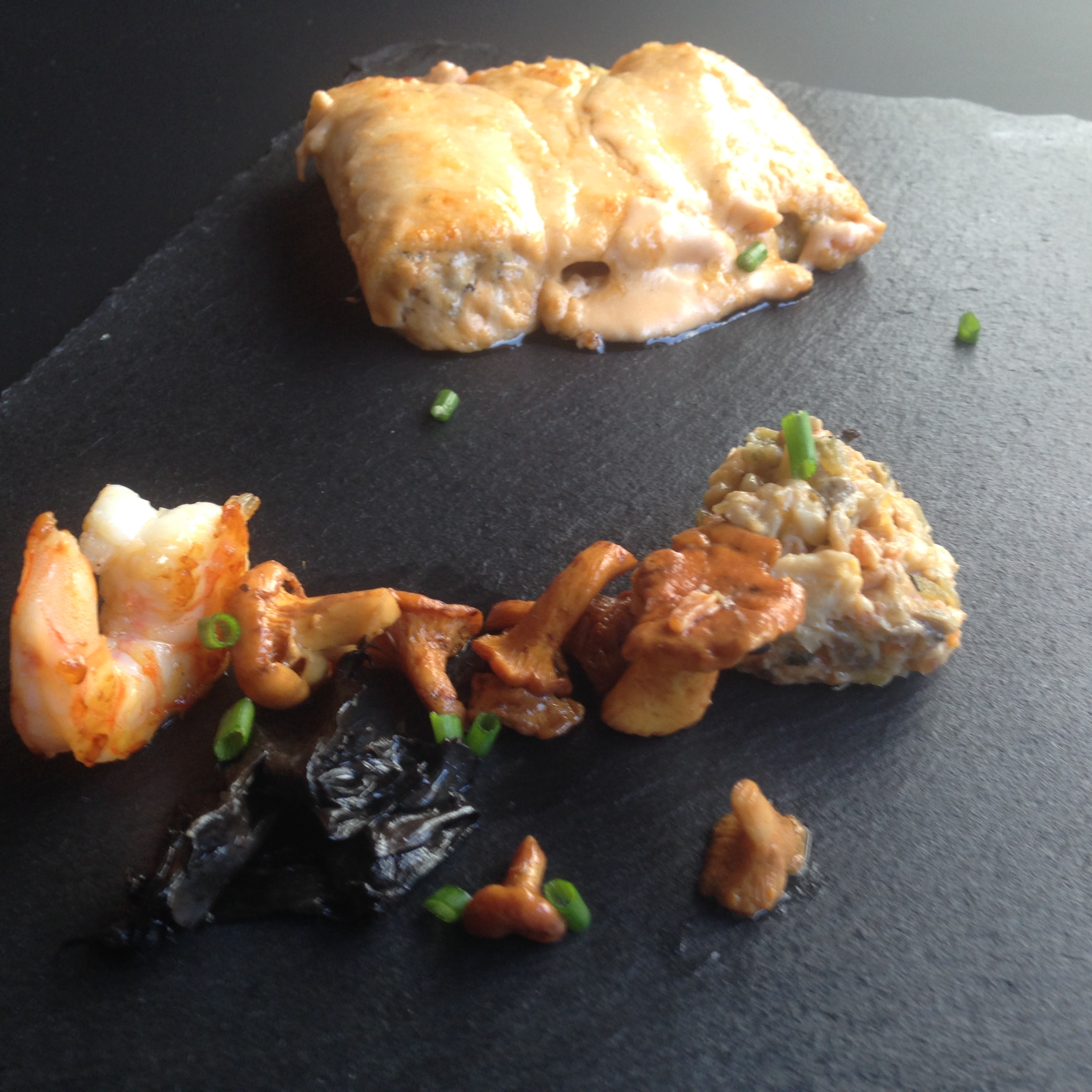 Podemos hacerlos y servirlos en raciones individuales o en fuentes y, después, servirlos en los platos acompañados de un langostino, unas setas salteadas y un poco del relleno.