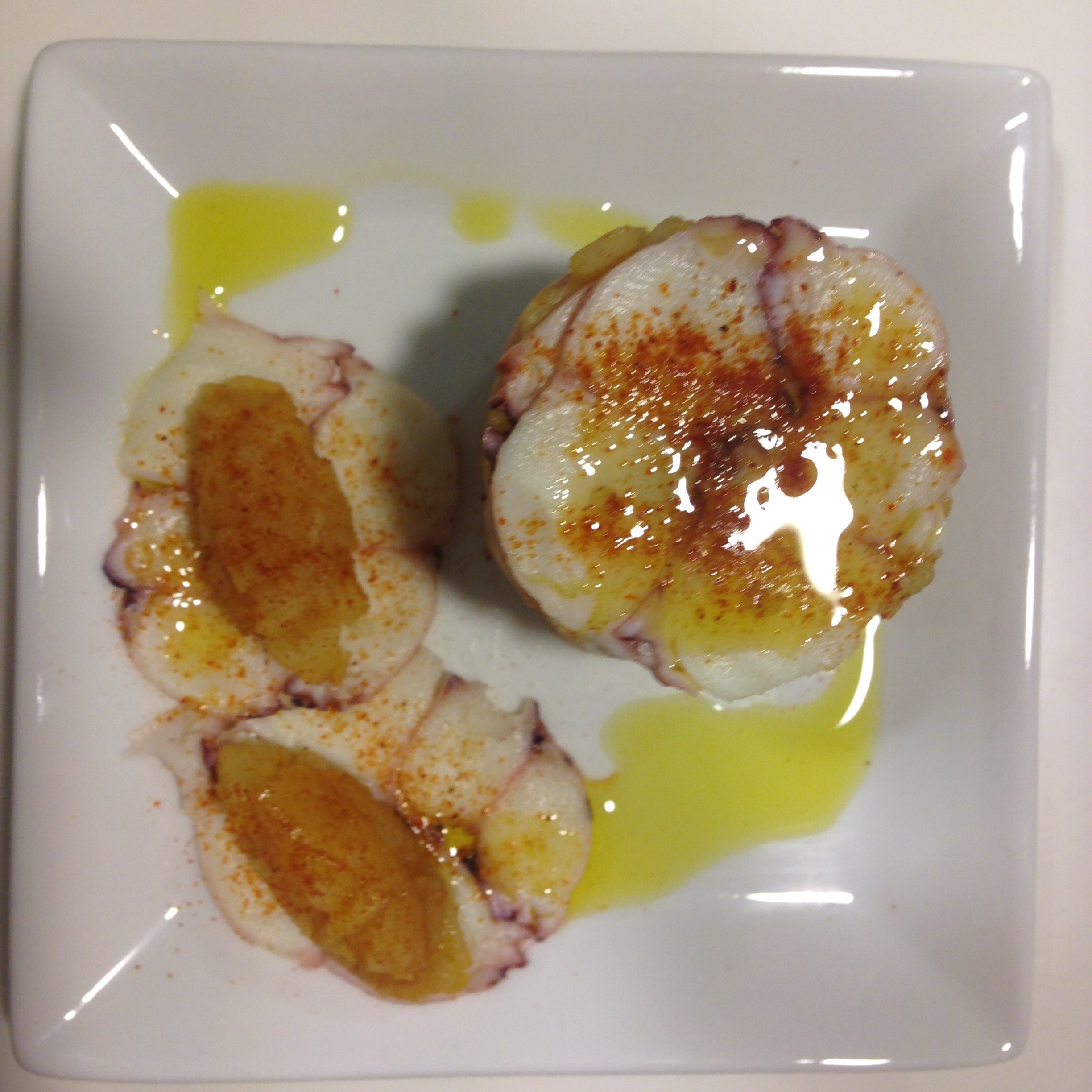 En el caso de hacer un A´feira, les ponemos sal, aceite de oliva virgen y pimentón dulce, las removemos y emplatamos con ayuda de un molde circular en el centro del plato. Podemos poner Quenelles de esta patata hechas con dos cucharas encima del pulpo o montar en un molde por capas pulpo-patata-pulpo. Cualquier forma vale si lo que ponemos está en su punto.