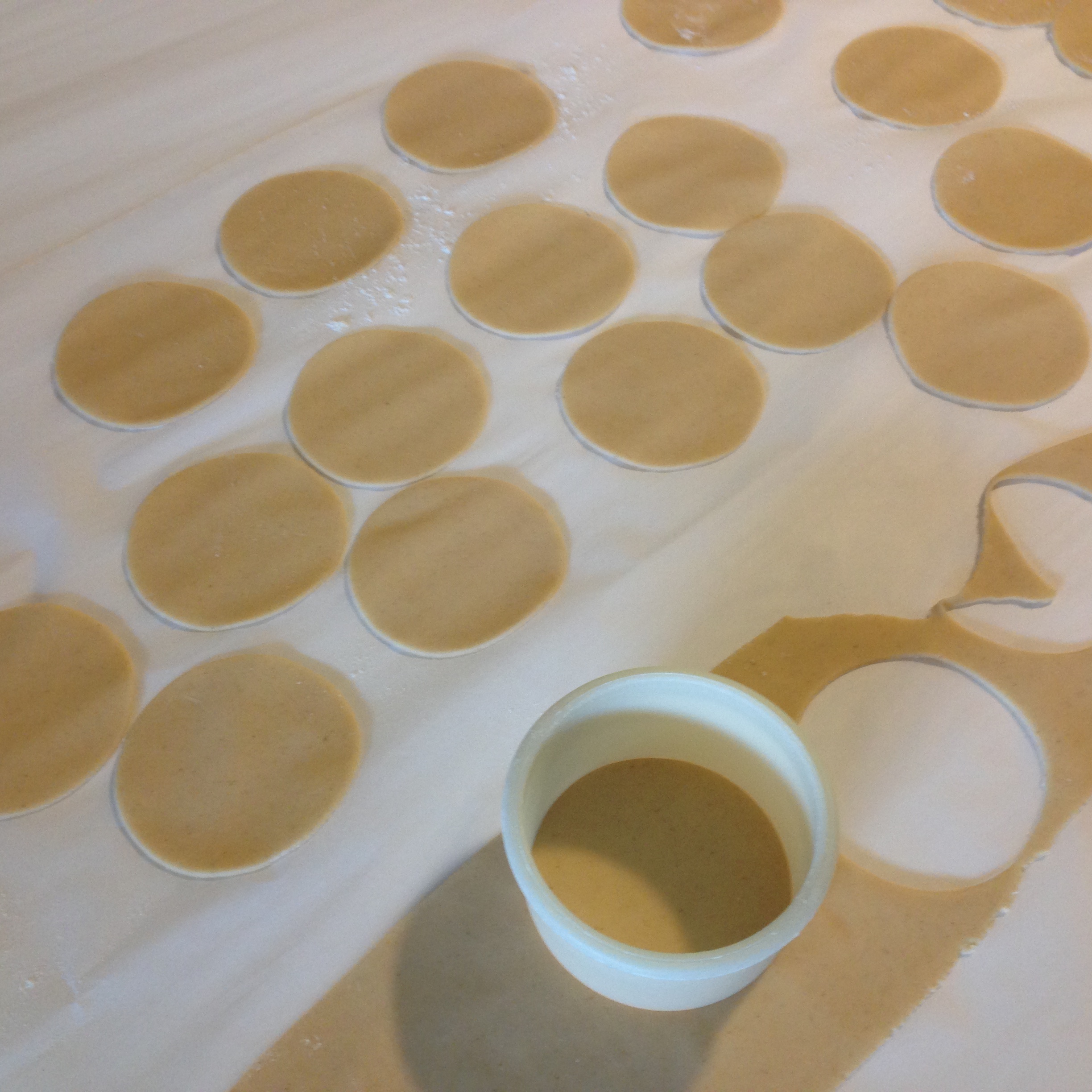 - Preparar la pasta fresca, reposar, extender y hacer las formas circulares.