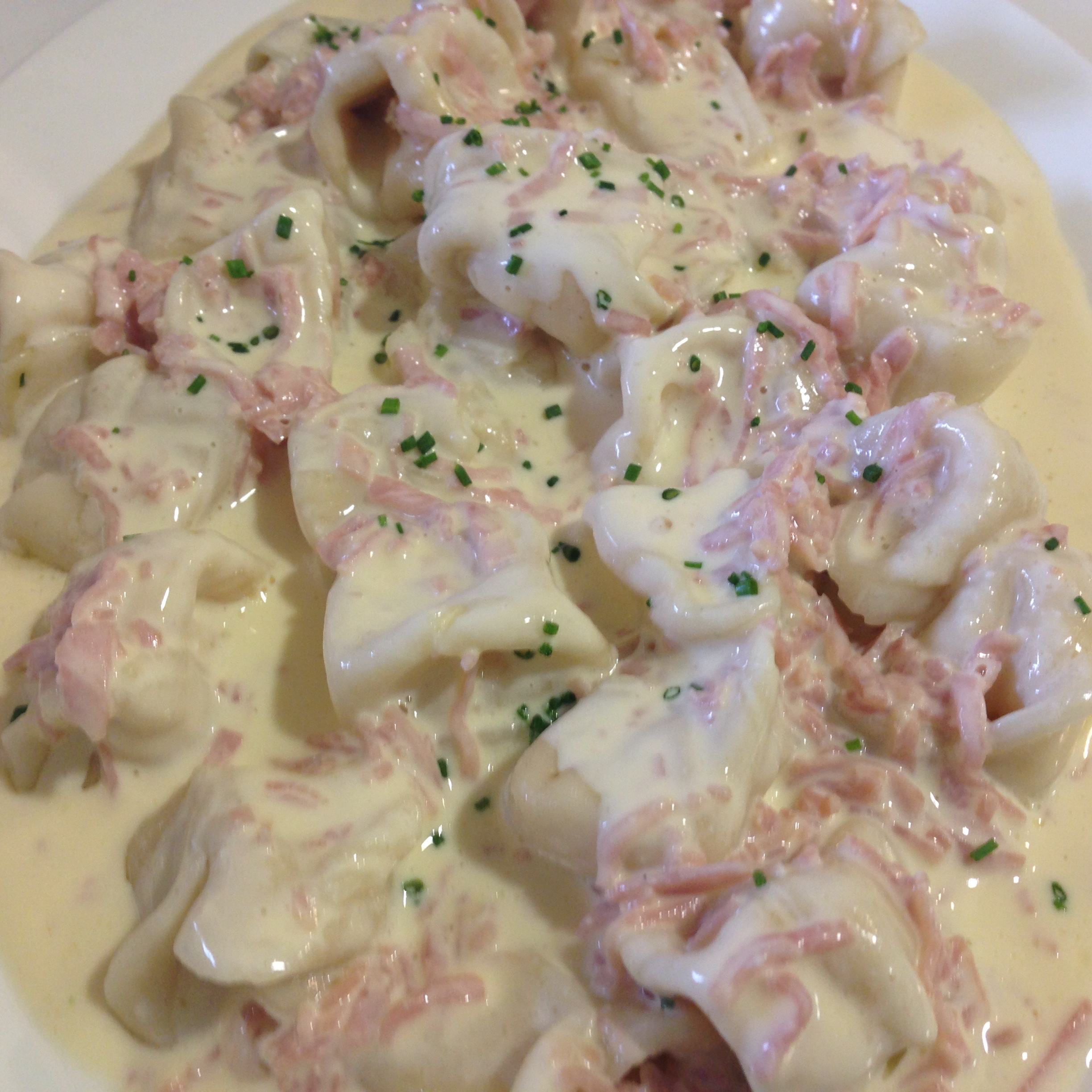 Ponemos en una cacerola con agua muy abundante un puñado generoso de sal y un chorreón de aceite. Cuando rompa a hervir, echamos la pasta. Esto lo hacemos en dos veces para que no se nos mezclen los dos, lo dejamos cocer, pero tardará al menos 15 minutos. Es importante pensar que hay una zona de los Tortellini que tienen cinco capas de pasta (en el cierre del mismo) y no nos puede quedar con sabor a crudo. Antes de sacarlos, cogemos uno y lo probamos.