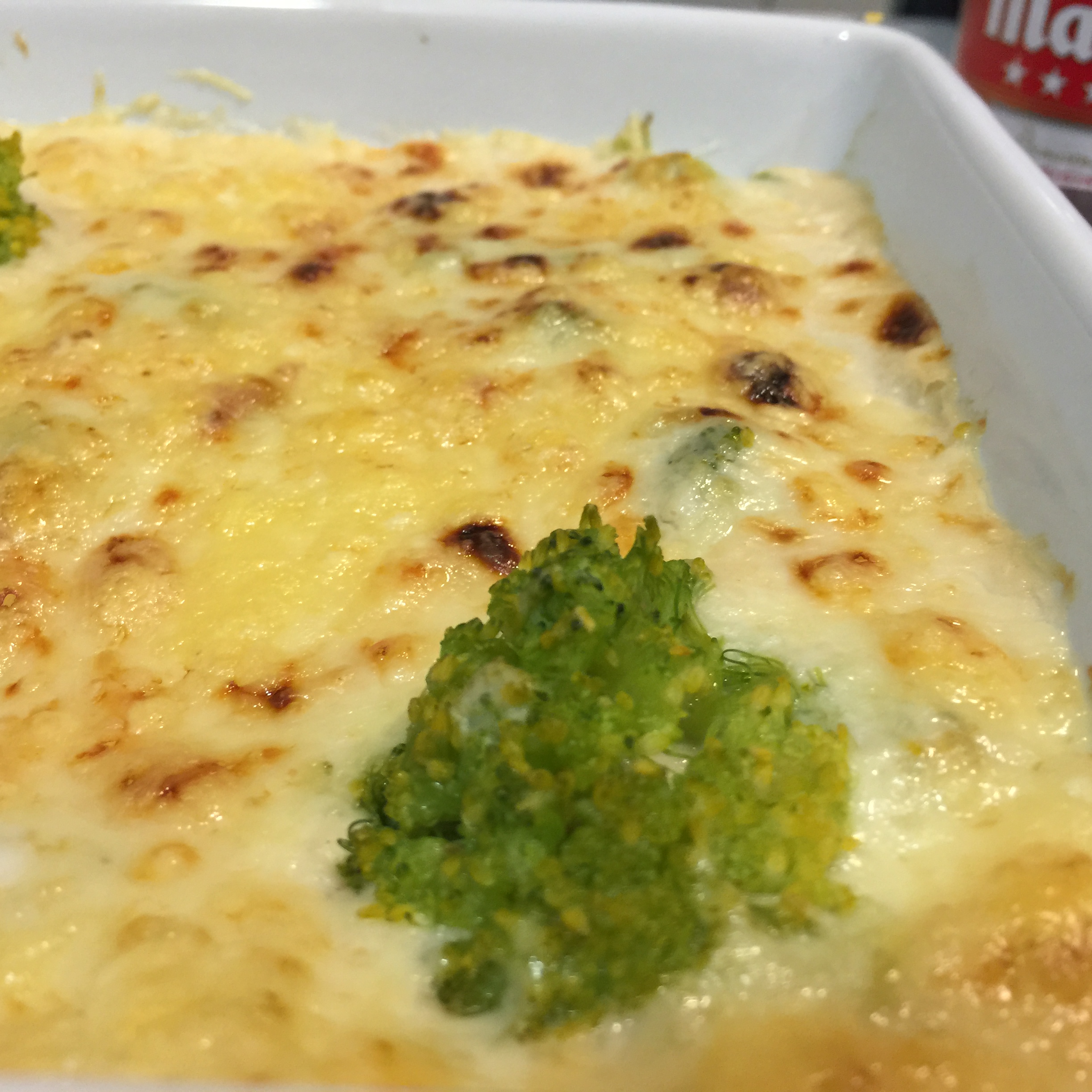 Ponemos en una fuente grande o varias más pequeñas las flores del brócoli en el fondo de las mismas y las vamos cubriendo con la bechamel, le ponemos el queso rallado por encima y las reservamos tapadas con papel film. En este momento, podemos guardarlas durante 3 ó 4 días en la nevera y mucho más tiempo en el congelador.