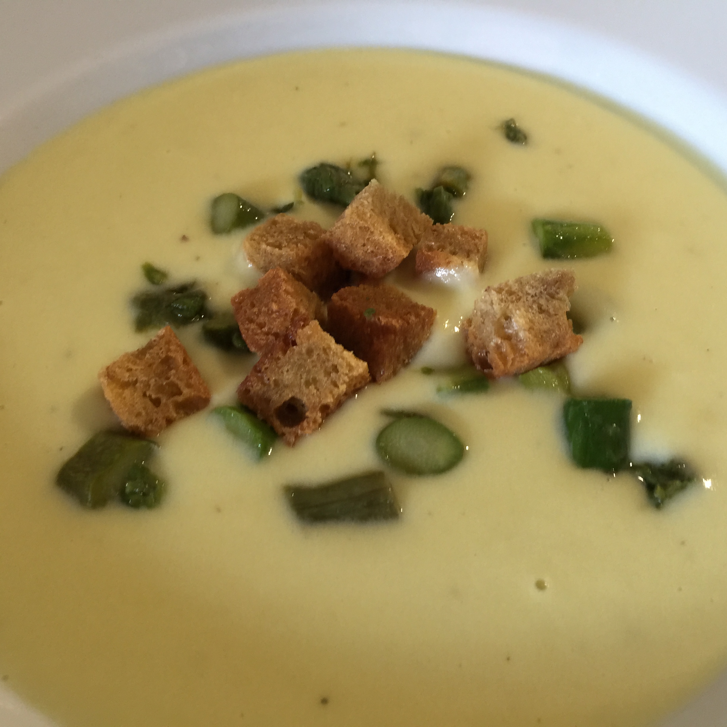 Finalmente, sacamos las rebanadas de pan, les quitamos los bordes y cortamos cuadraditos de 1×1 cm, ponemos aceite de oliva en una sartén y los freímos. Cuando estén dorados, los sacamos sobre papel absorbente.