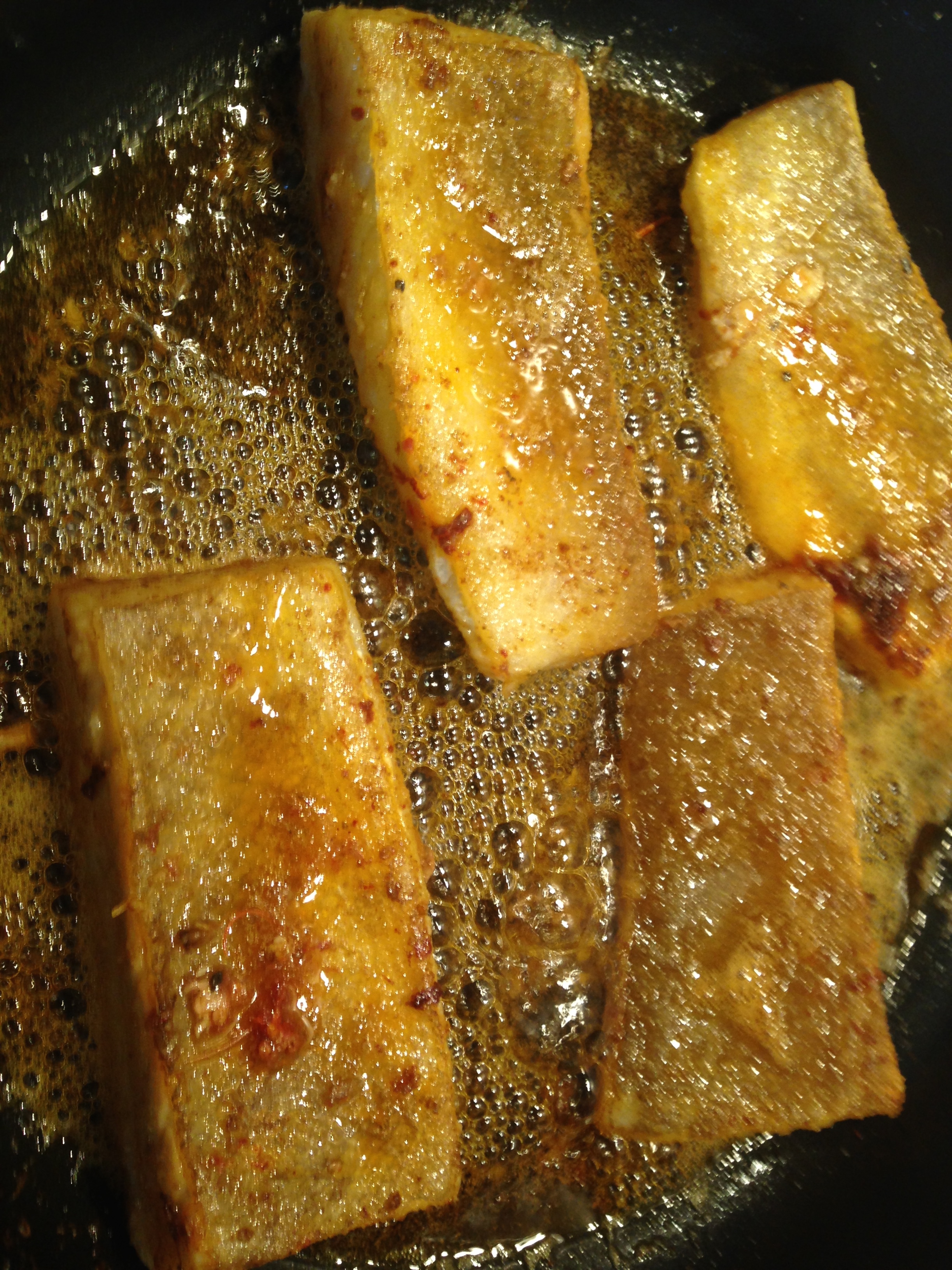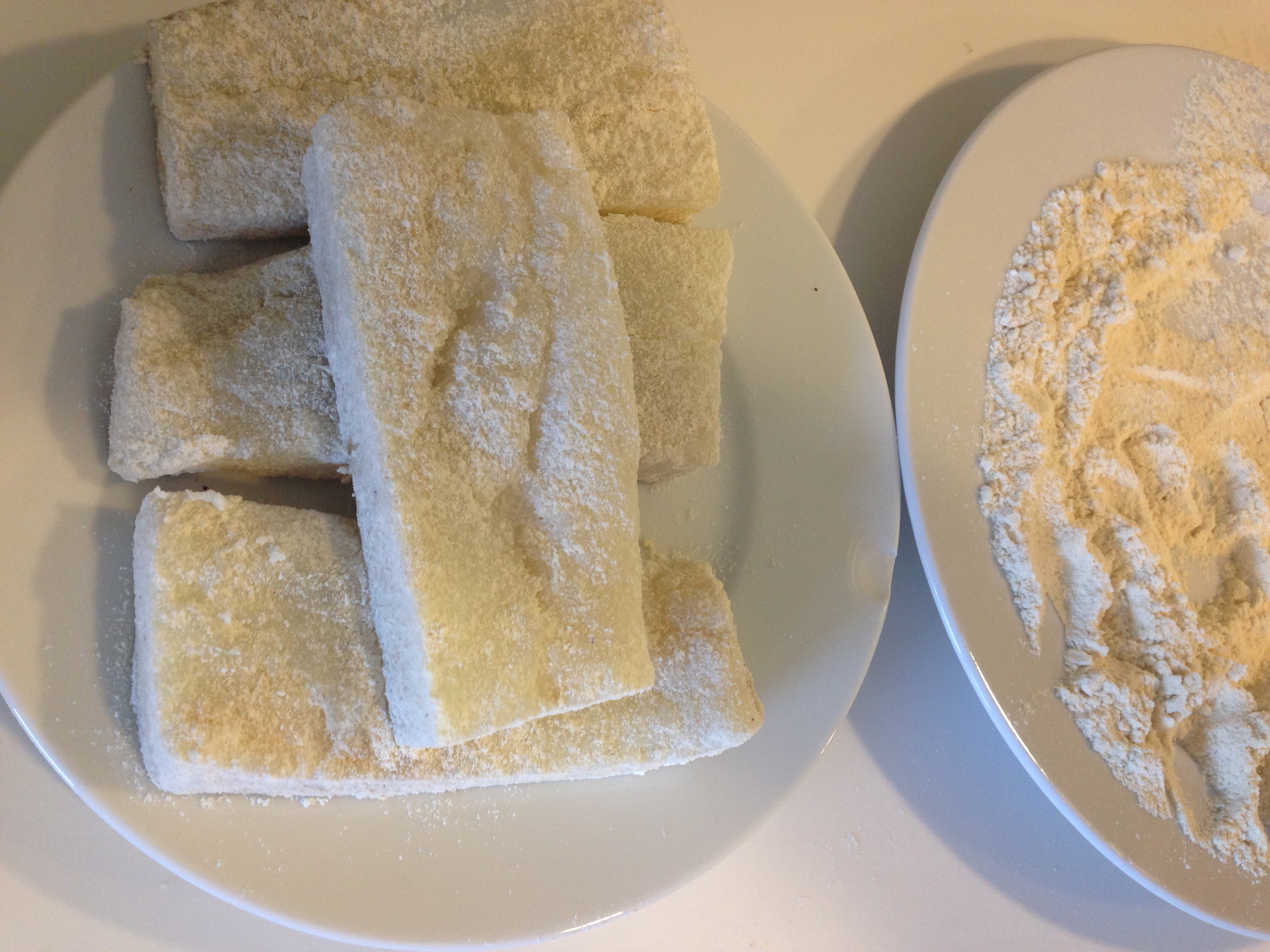 Dos días antes cortamos los lomos en trozos más pequeños y los ponemos a desalar durante 48 horas, cambiándoles el agua cada 8 horas y con la piel hacia arriba.