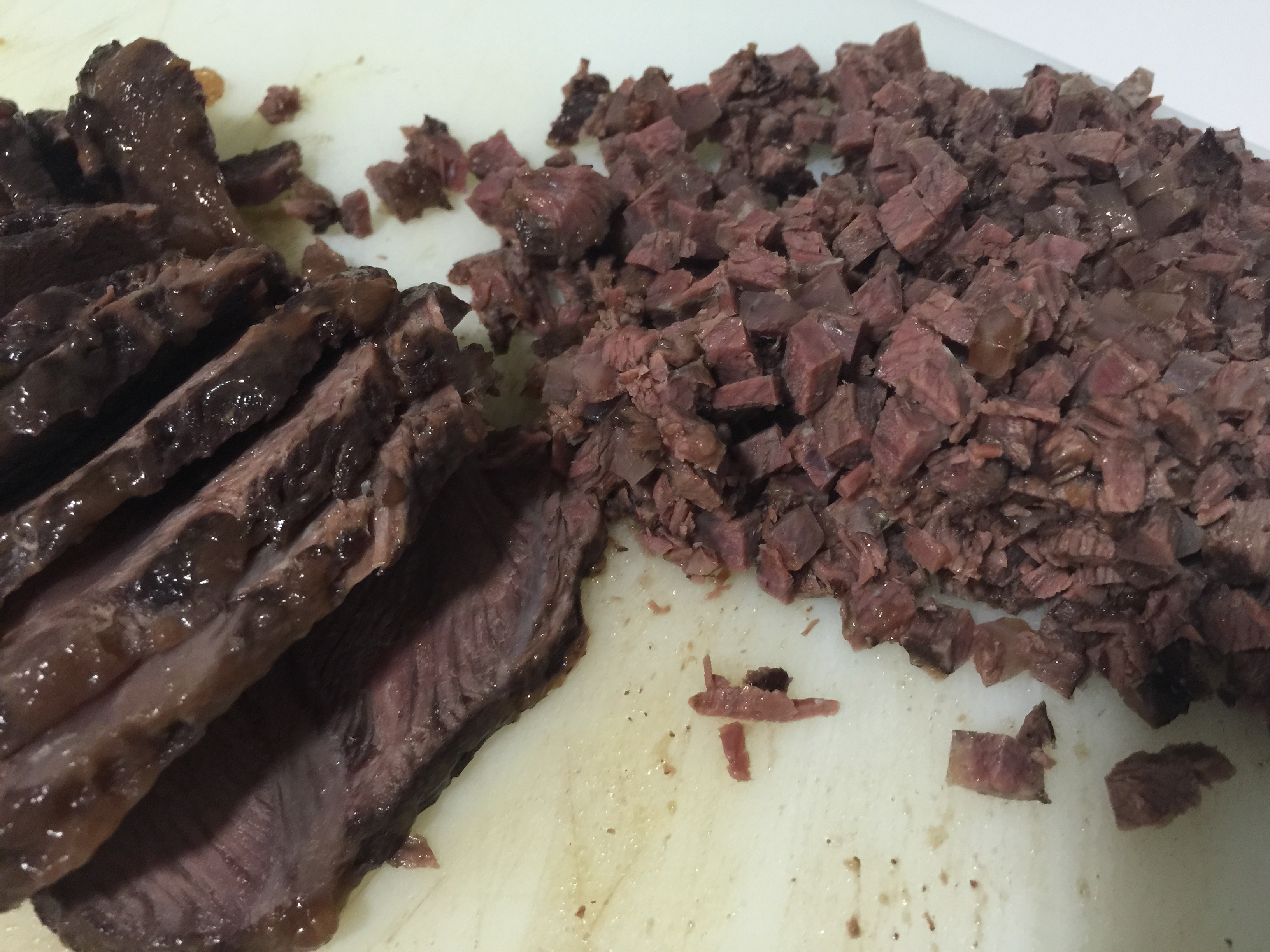 Finalmente, ponemos las carrilleras a enfriar en la nevera. Una vez frías, las cortaremos en cuadraditos pequeños de 5×5 mm, o incluso inferiores. Lo guardamos en frío con un poco de la salsa reducida y lo reservamos. El líquido lo ponemos a reducir hasta que tenga una consistencia un poco espesa. Esto se puede hacer en el momento antes de servirlo.