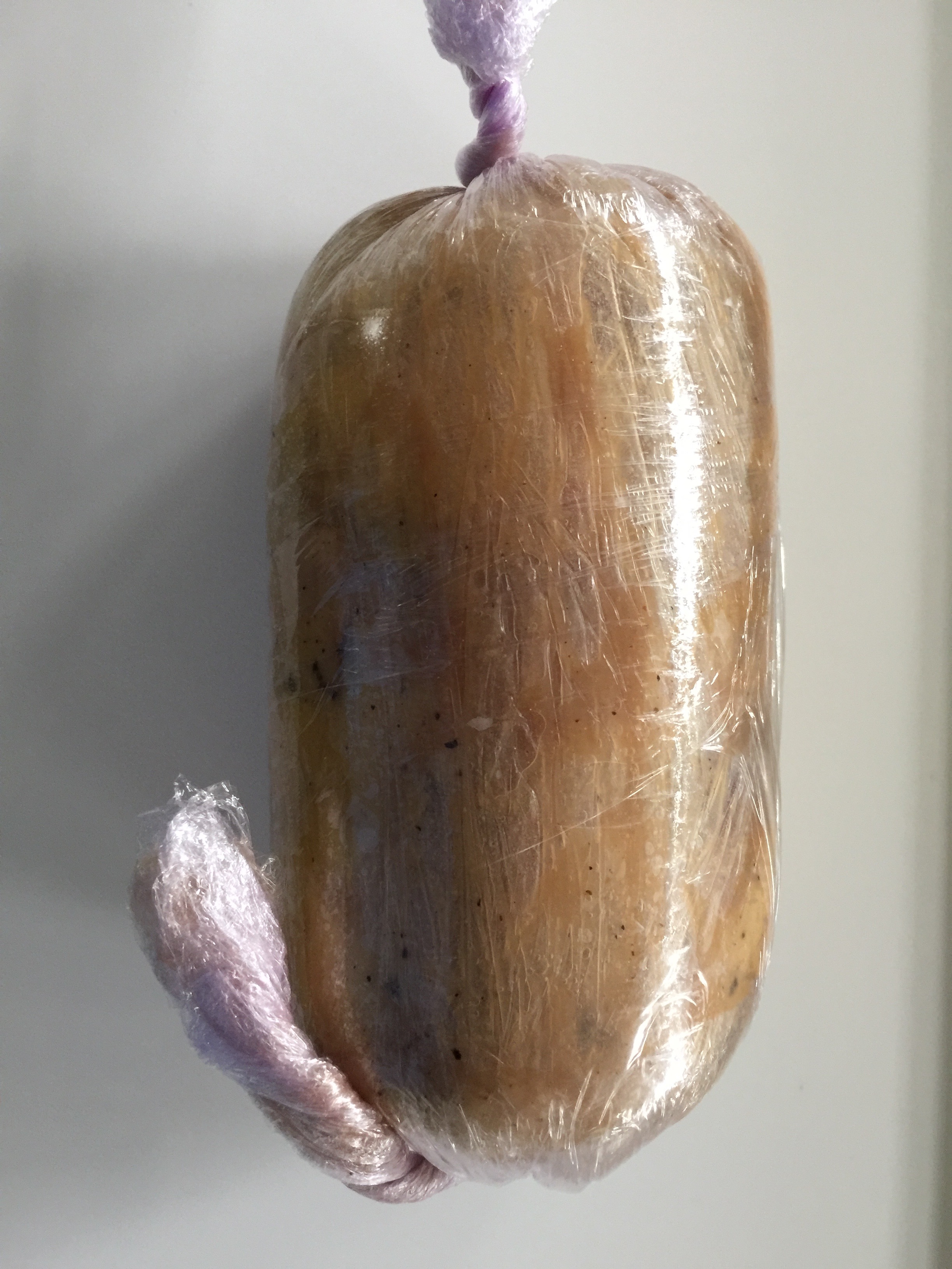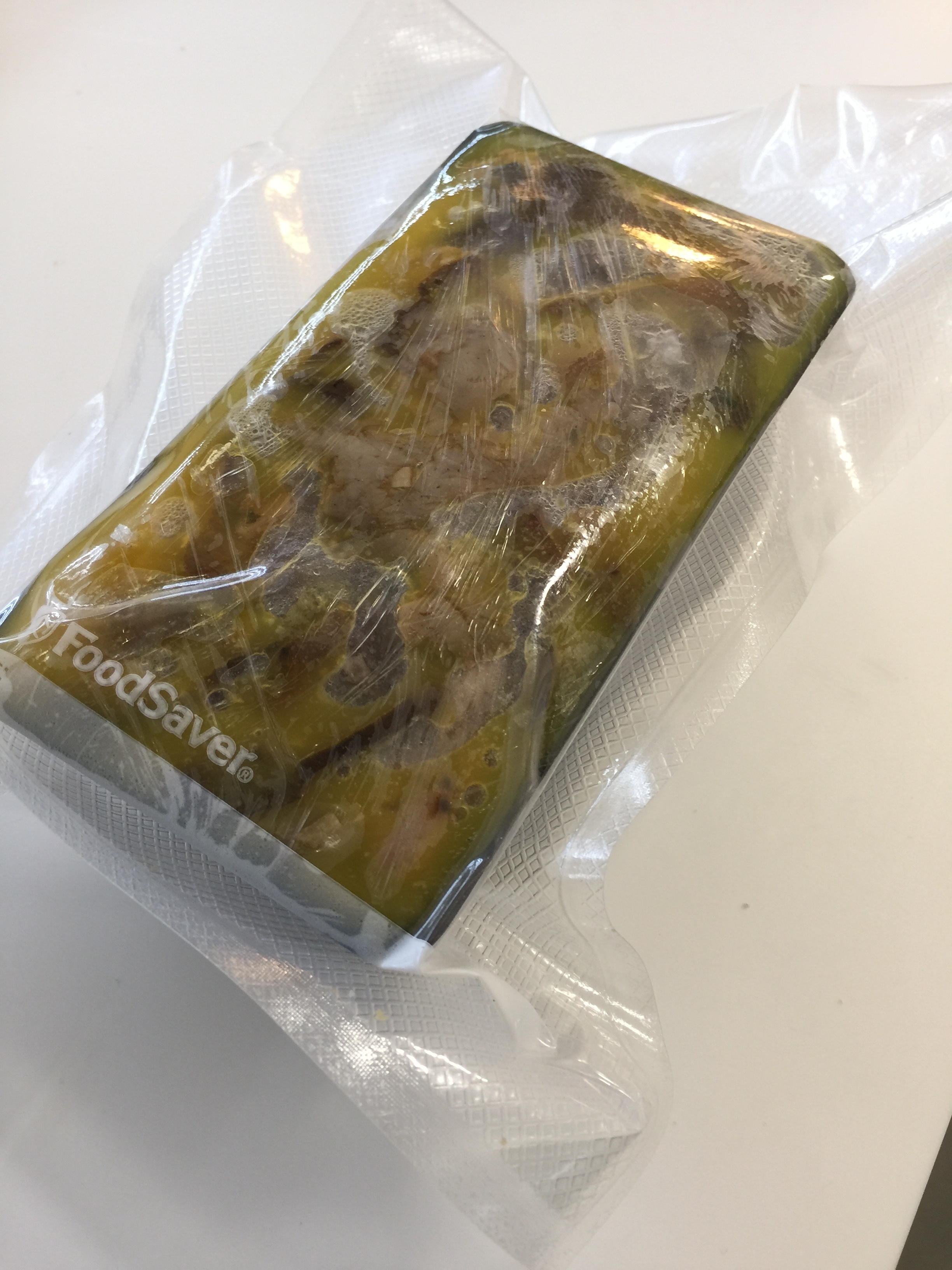 En cuanto al foie, tenemos unos medallones desvenados, les hemos puesto sal, pimienta, una cucharada de coñac, un poco de Sauternes y los colocamos unos al lado de los otros. Con papel film hemos hecho un rollo, lo hemos dejado enfriar mucho y, después, hemos cortado unos medallones, que haremos mi-cuit a la plancha.