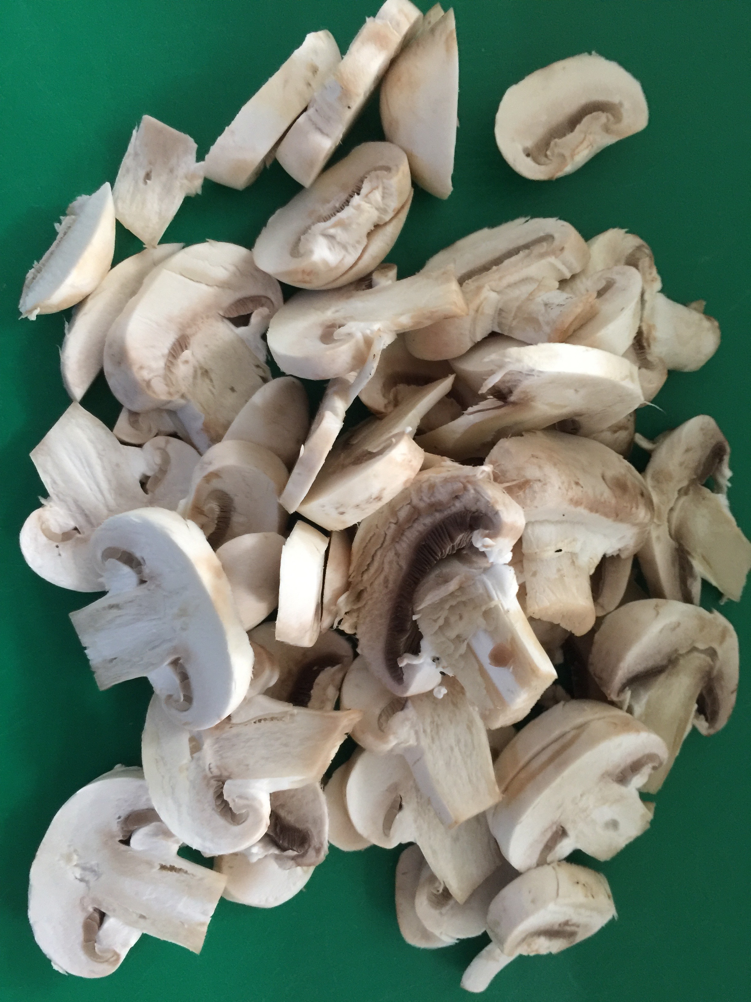 Por otro lado, tenemos unos champiñones, que son un poco insípidos, por lo que los hemos marinado durante un día con aceite, ajo, sal y pimienta y luego los hemos salteado. En los condimentos aparece la chalota, que podríamos picar muy fina y saltearla un poco antes de echar los champiñones si bien, en este caso, no le hemos puesto.