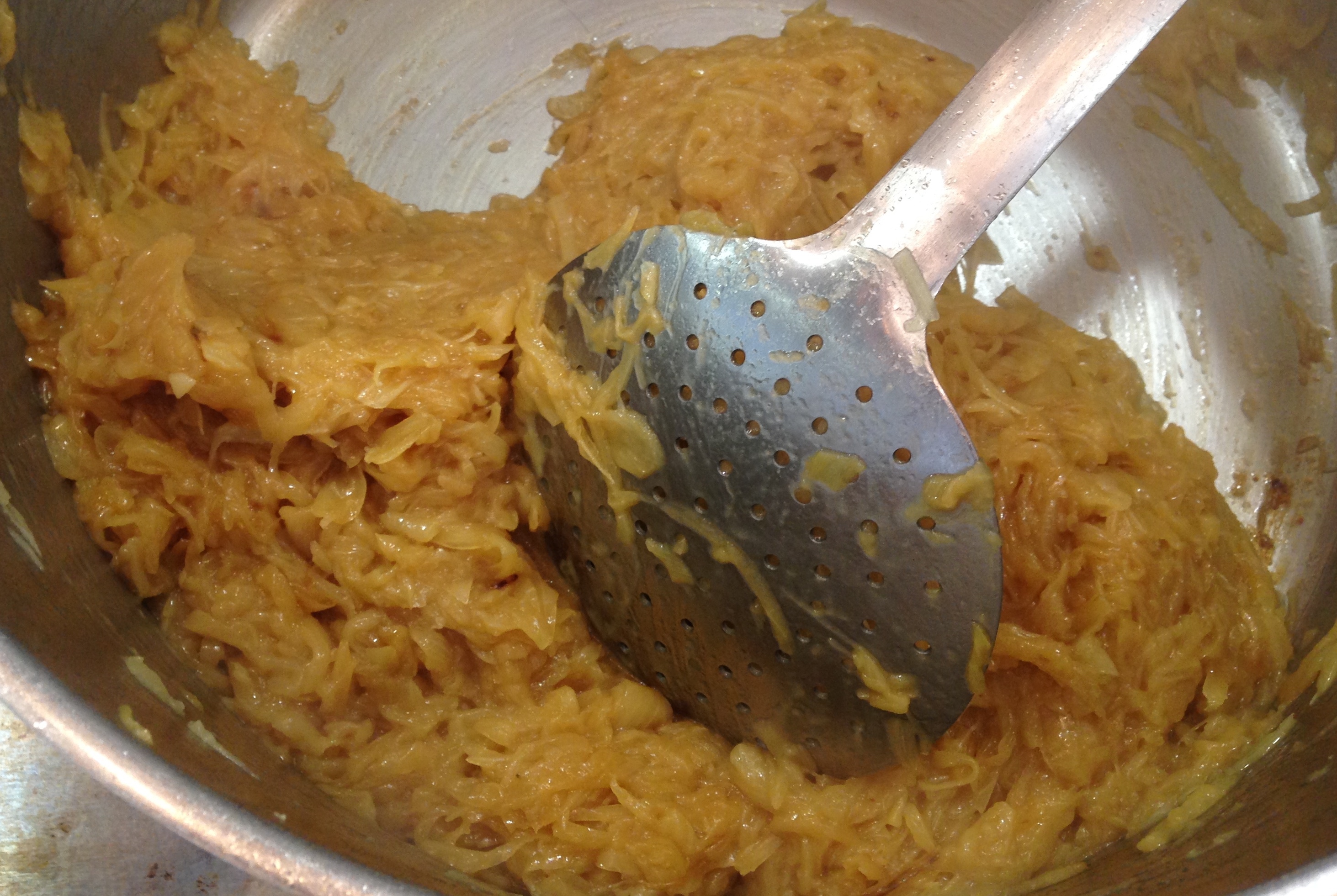 En una cacerola con la mantequilla, ponemos la cebolla a sudar con una pizca de sal y procedemos a caramelizar.