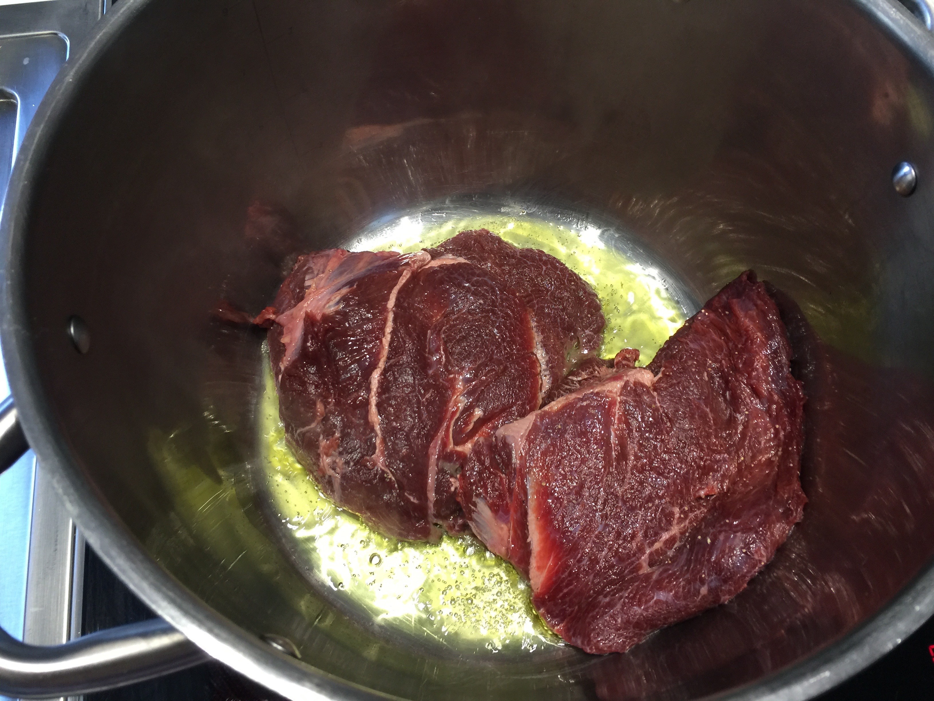 Cuando las tenemos limpias, las salpimentamos y las sellamos por todos lados en la misma sartén donde luego ponemos los recortes, las sacamos y las reservamos tapadas.