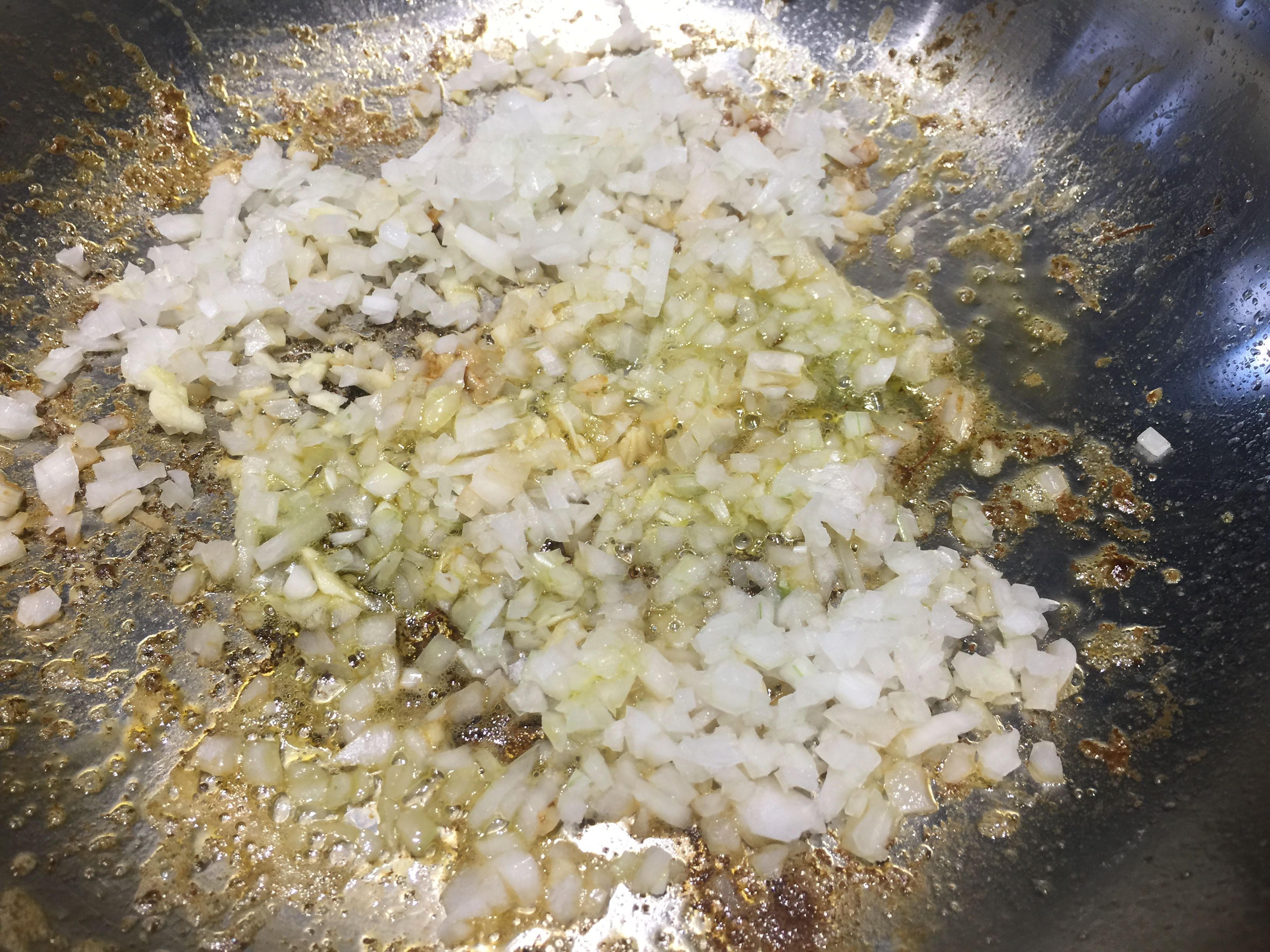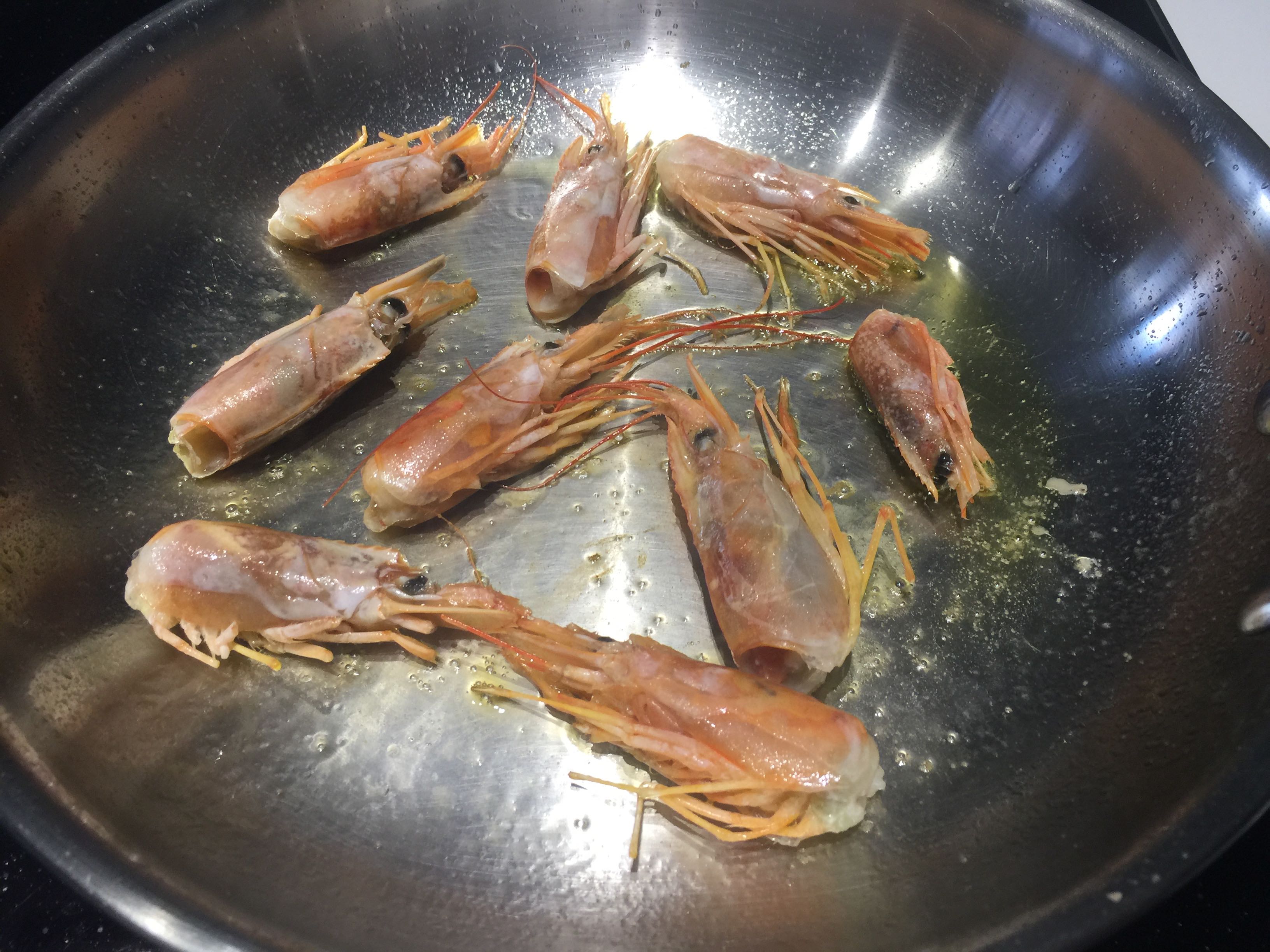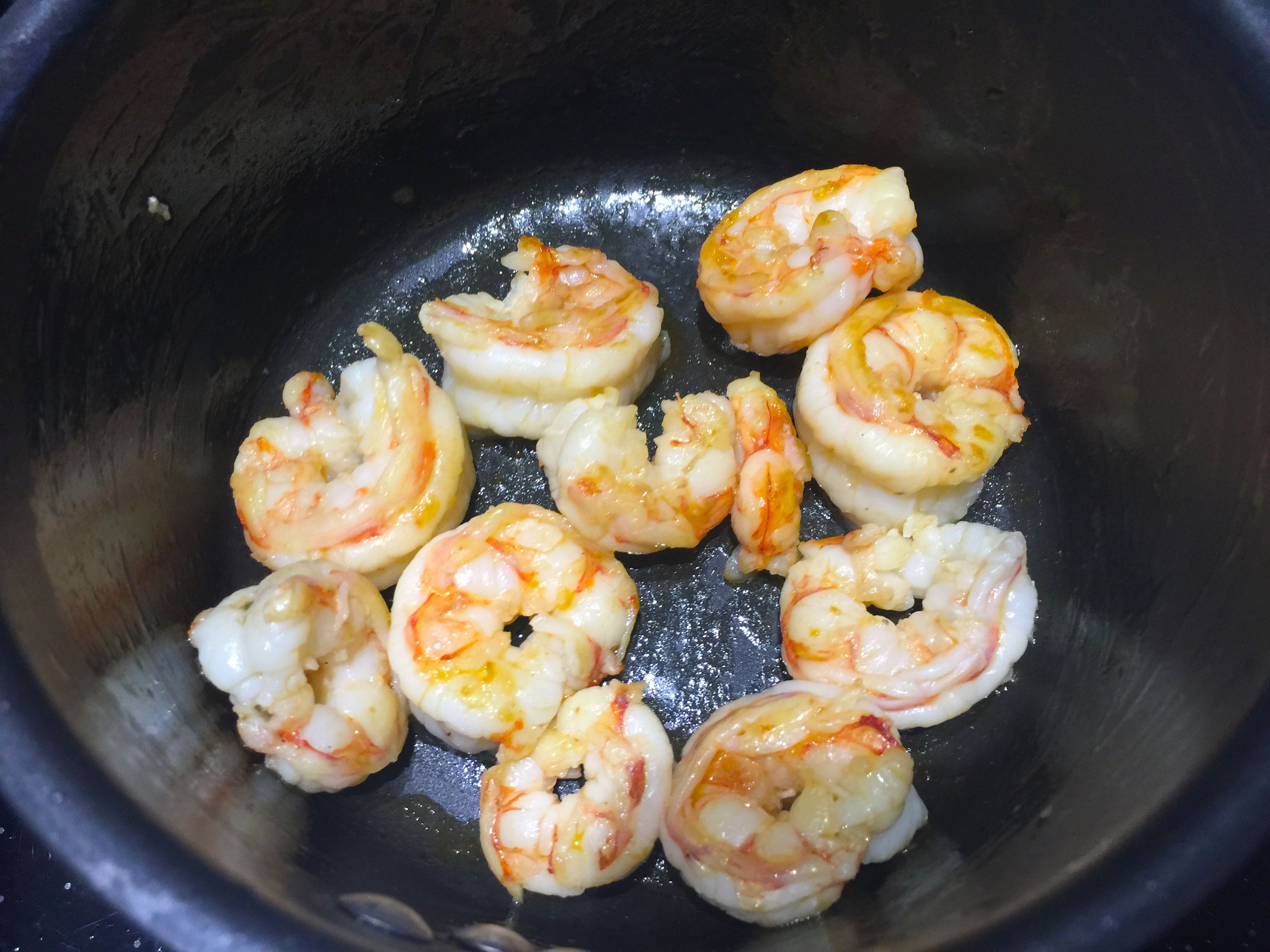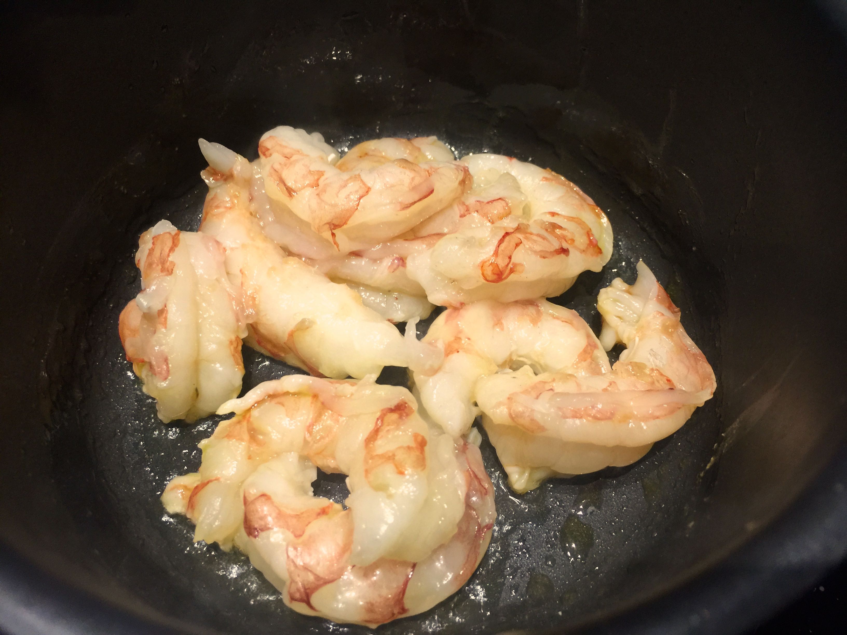 Mientras tanto, con unas gotas de aceite de oliva, salteamos los gambones.