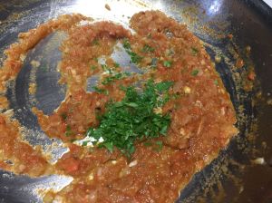 Seguidamente, picamos el perejil, echando una parte en el guiso y otra parte al final para darle color al plato.