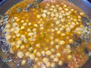 La forma rápida de hacer esta comida es con los garbanzos ya cocidos que venden pero, si bien hay marcas muy buenas de ello, a mí me gusta hacerlos.