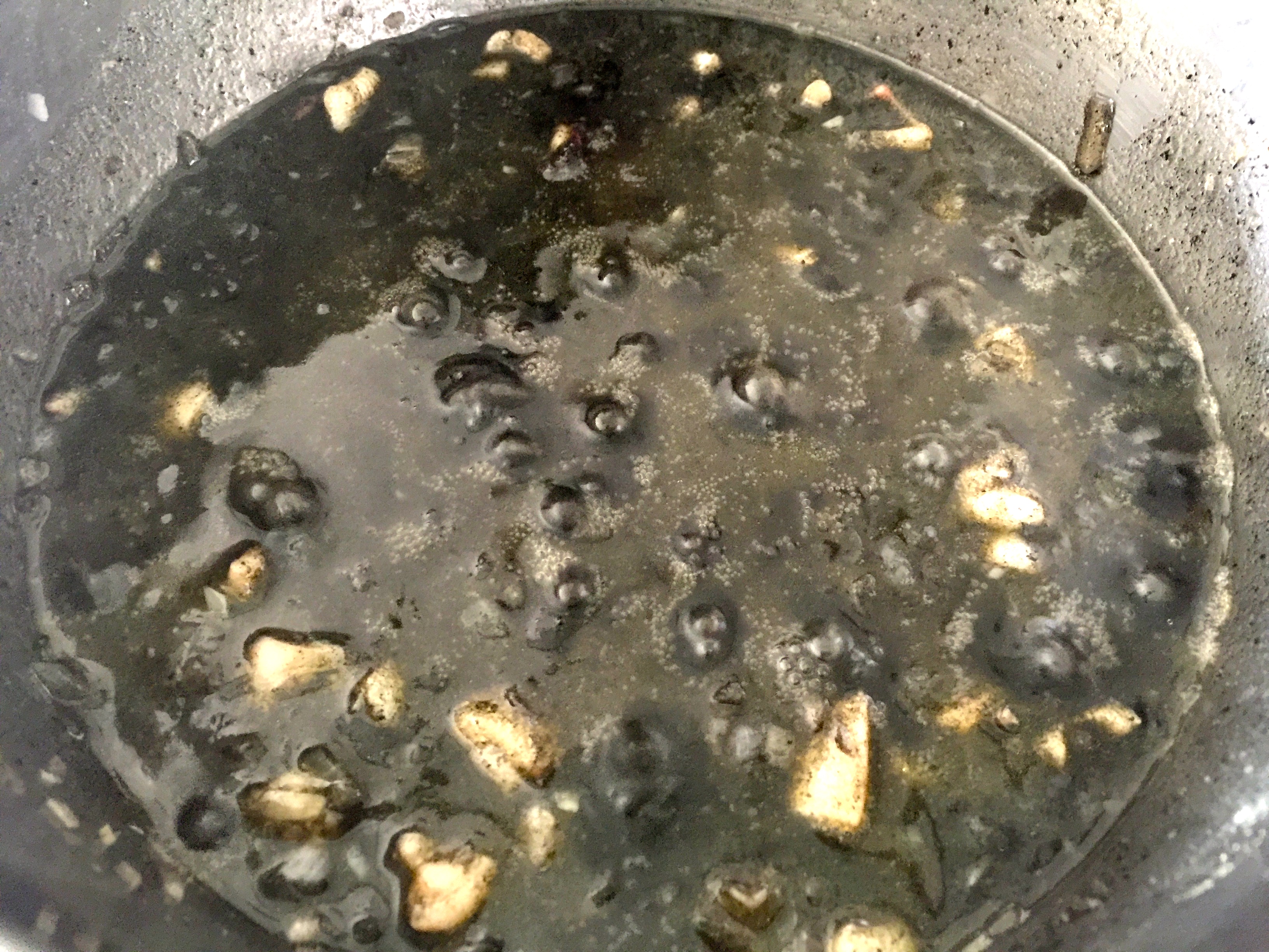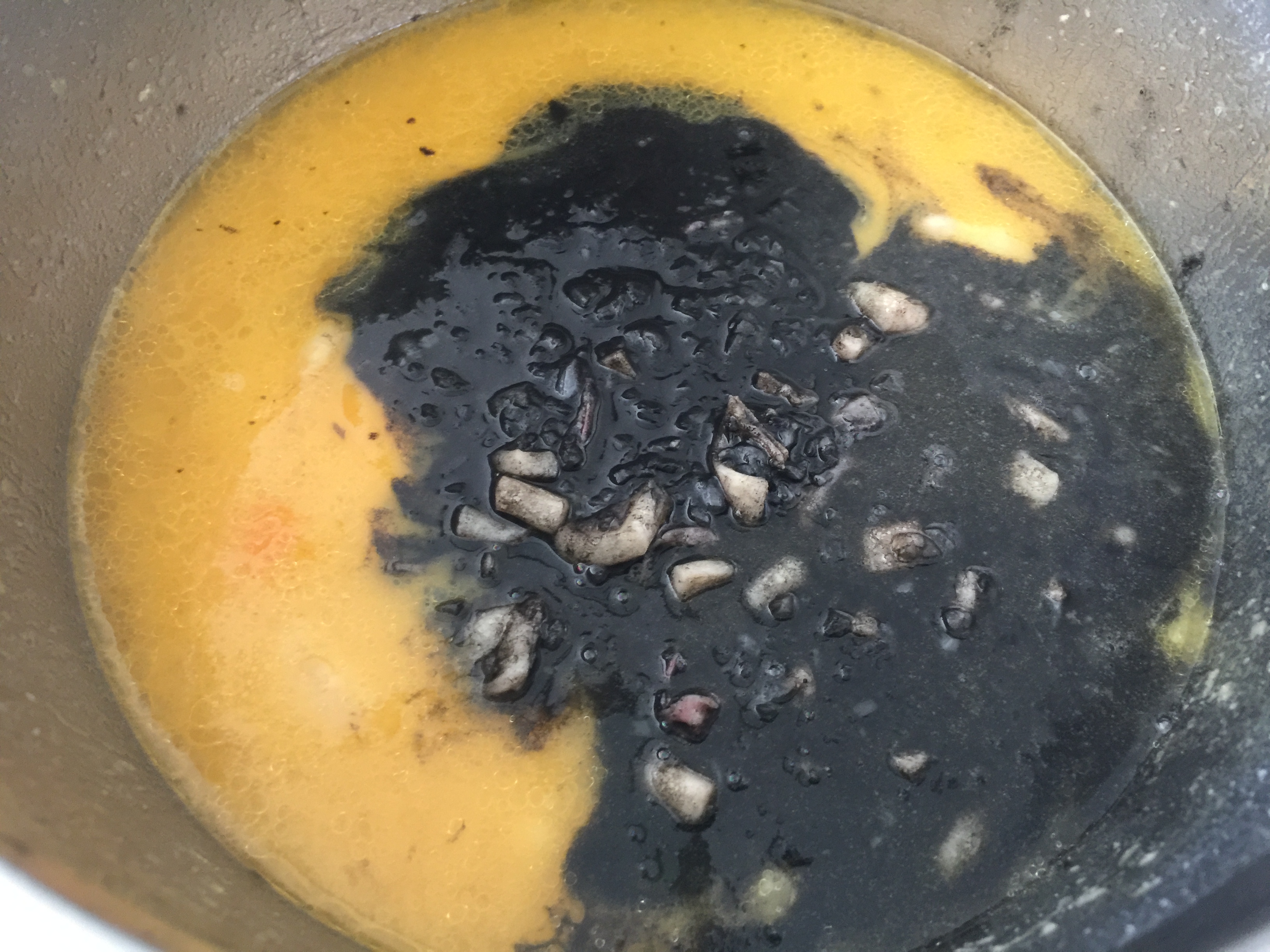 Pasado este tiempo, le incorporamos las tintas, lo tenemos tres minutos más, retiramos del fuego y reservamos.