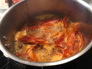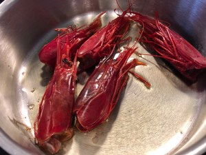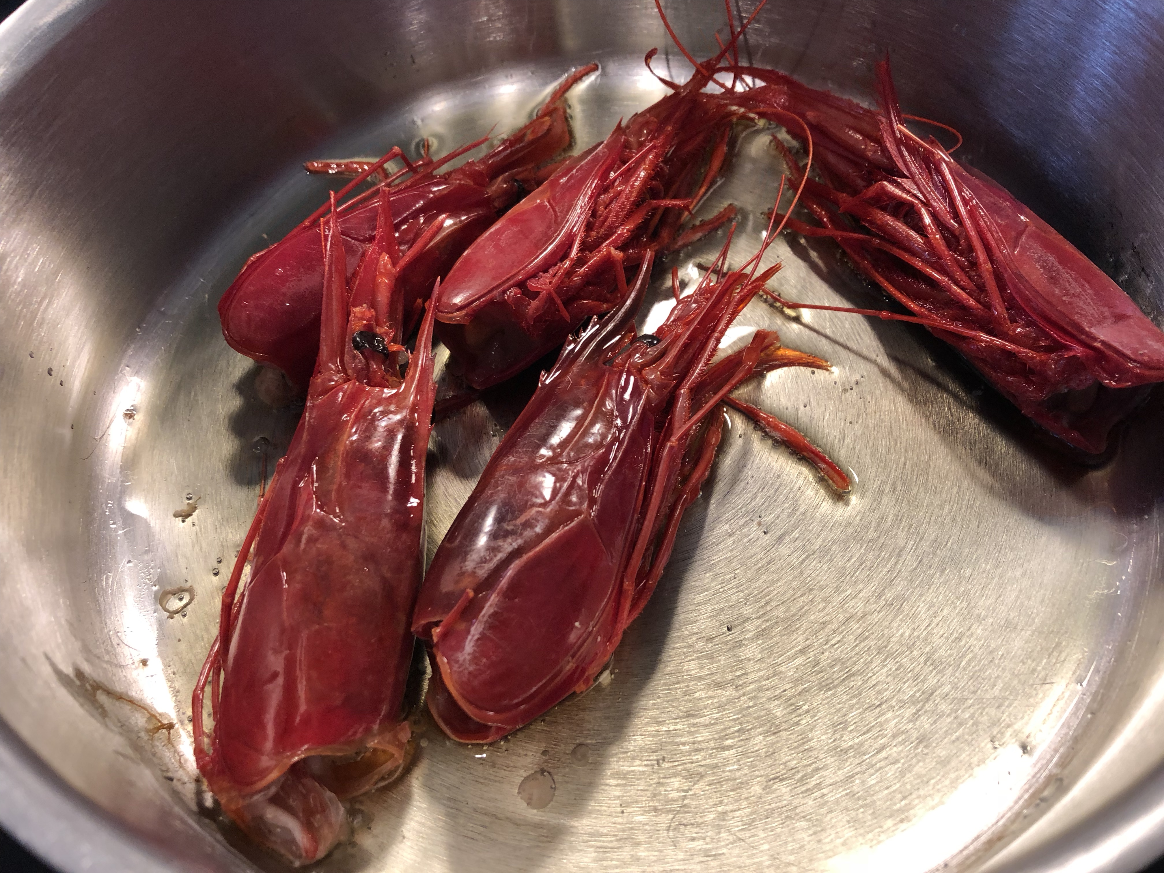 A continuación, pelamos los Carabineros, reservamos las cabezas, limpiamos la tripa y guardamos filmadas las colas.