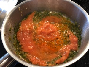 Si se quiere se le puede añadir al sofrito pimiento verde picado muy fino