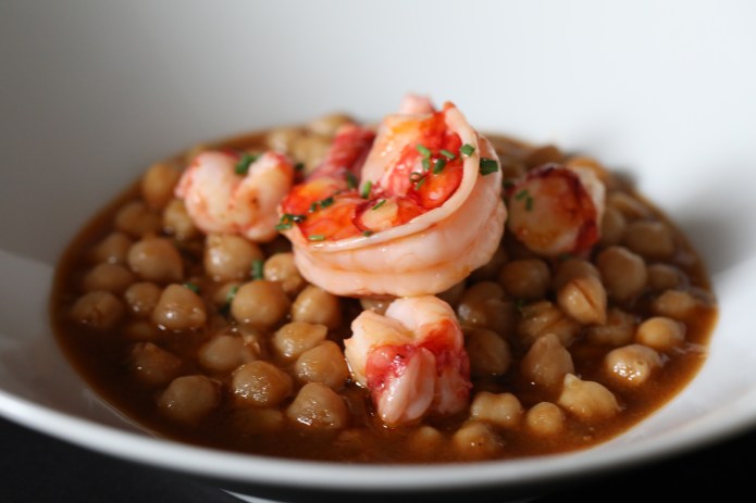 Esta receta es muy parecida a la de los garbanzos con langostinos y Colmenillas ya publicada, el sistema es el mismo, por un lado se cuecen los garbanzos con verdura o se compran cocidos, por otro lado lo que hacemos es un sofrito con la base de las cabezas de los carabineros y que ademas utilizaremos como parte del caldo cociéndolas solas o en un fondo de pescado.