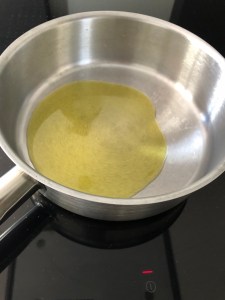Posteriormente, preparamos una vinagreta con aceite, sal y vinagre para la ensalada que previamente hemos lavado y cortado.