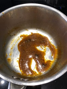 Por otro lado, la cabeza ya ha estado cociendo unos veinte minutos, la sacamos y colamos el líquido presionando y lo ponemos al fuego a evaporar hasta que nos quede una textura muy melosa.