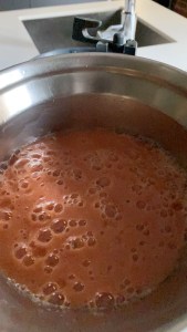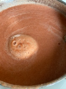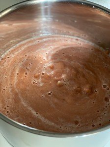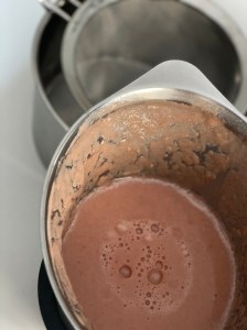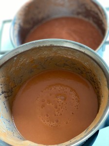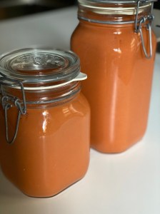Todo ello lo pones en la batidora, minipimer, thermomix o similar a triturar hasta que sea una mezcla homogénea, a continuación pones un bol o cacerola suficientemente grande y un colador fino y lo pasas por él. Os diré que si en vez de una cuchara utilizáis un cazo, se cuela prácticamente de inmediato y así hacéis hasta que tengáis pasado todo.